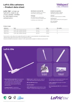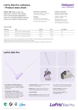 LoFric® Elle™ Pro is a single use hydrophilic, ready to use catheter with multiple eyelets, designed to allow for complete bladder emptying without the need for repositioning. LoFric® Elle™ a single use hydrophilic, ready to use urinary catheter.